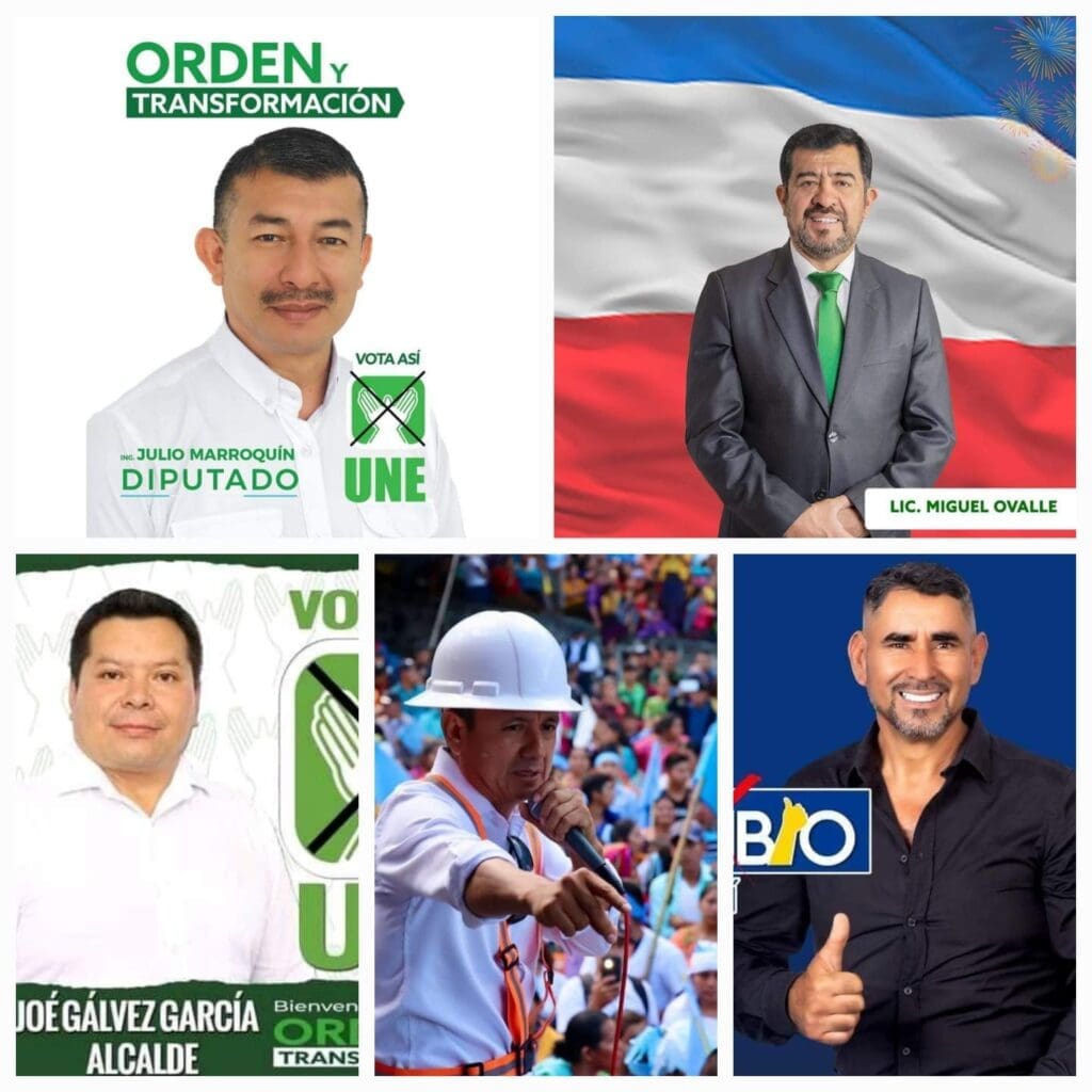 ...El listado lo encabezan Miguel Ovando y Esduin Javier Javier, alcaldes de Salcajá e Ipala. El primero participó con la UNE...