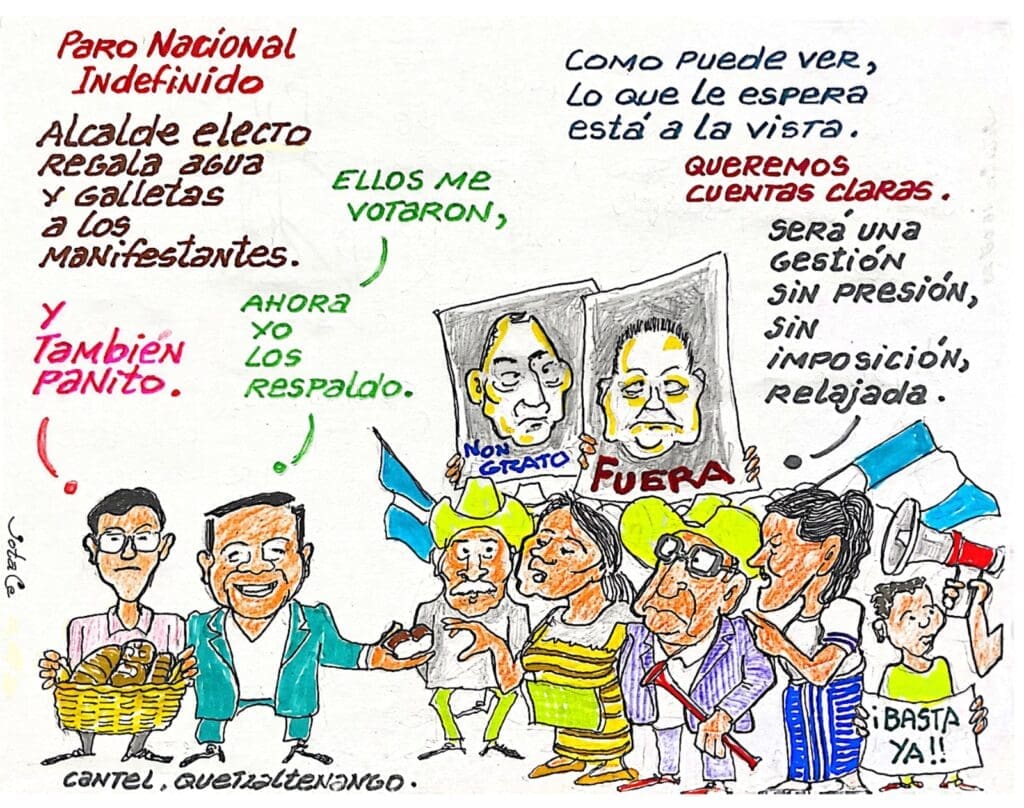 Les llevó agua, gaseosas, galletas y pan para apoyar a los manifestantes. De igual manera hizo su igual en Cobán, Alta...