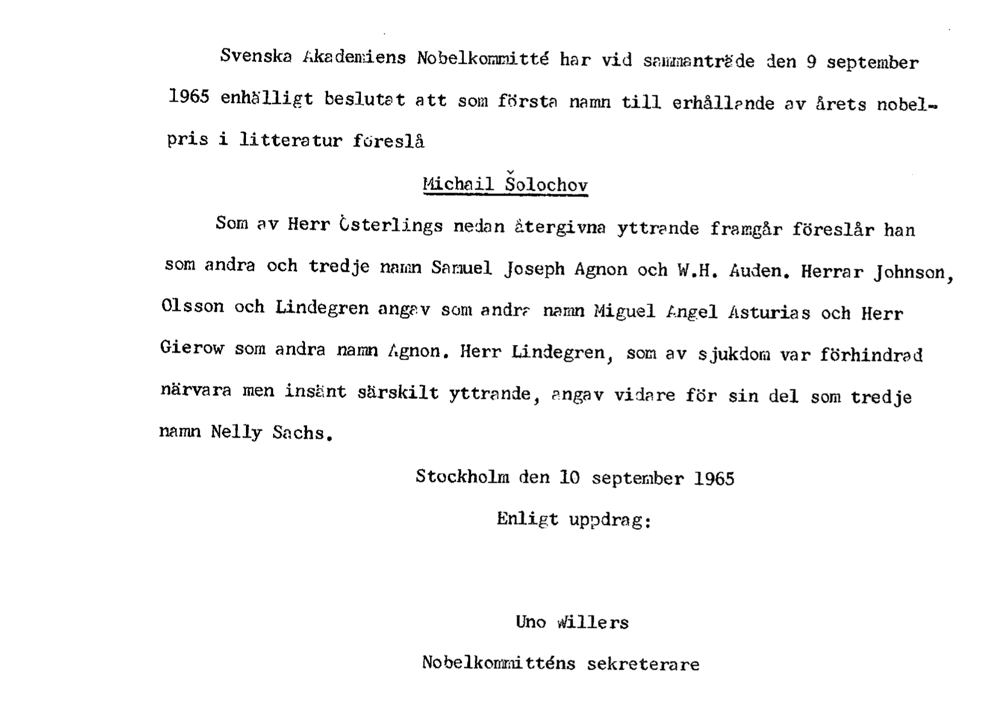 Ojoconmipisto solicitó a la Fundación Nobel acceso a esas deliberaciones para conocer a detalle sus argumentos, sin embargo, estas no son públicas. En respuesta proporcionó copias digitales de la última página de cuatro años con los nombres de finalistas. El medio obtuvo imágenes del dictamen de 1967: fotografías de las copias escritas a máquina, en sueco y en papel carbón.