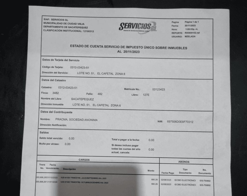 El inmueble es propiedad de la entidad PRACMA, S. A. De acuerdo con el acta de constitución , el 6 de noviembre de 2018, Maziel Ivonne Arango, de 43 años, soltera y politóloga, y Álvaro José Pineda Cueto, 30 años, casado, se presentaron ante la notaria Jessica Rocxana Mayén Alvarado, para erigir la entidad denominada PRACMA, Sociedad Anónima.