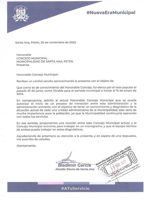 El alcalde electo de Santa Ana, Petén, Elmer Bladimir García, anunció que realizará una auditoria forense en la municipalidad que dirige César Augusto Garrido Rosado. Este último postulado en las elecciones del 25 de junio con el partido Vamos para una primera reelección, pero quedó en segundo lugar con una diferencia de 1 mil 35 votos.