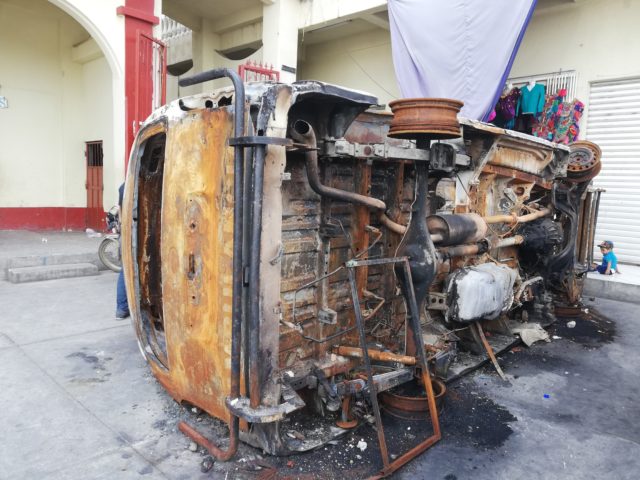 Algunos medios informaron que quemaron viviendas, una ferretería y la sede de la UNE. Cinco personas resultaron heridas. “A Dios gracias no hubo pérdidas humanas”, dijo Lux Yat.