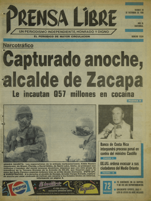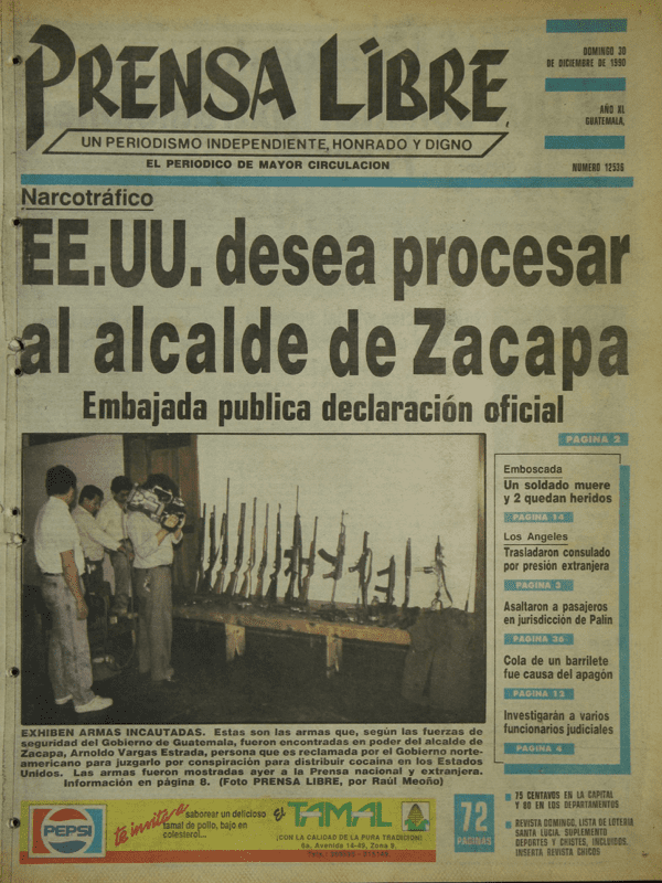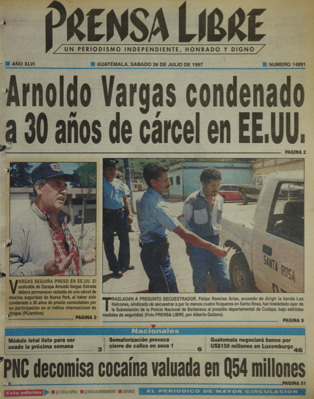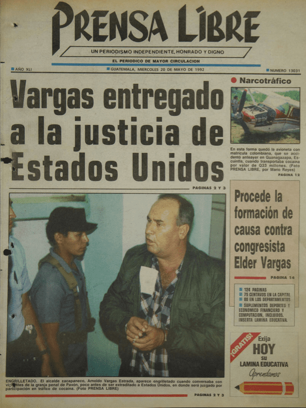 Ex comando civil en la guerra y exalcalde de Zacapa, Vargas había sido extraditado en 1992 y venía de cumplir casi completa una sentencia de 30 años y cinco meses por conspirar, importar, poseer y distribuir cocaína hacia Estados Unidos. Se suele decir que fue el primero de la larga lista de poderosos narcos guatemaltecos a los que las autoridades han capturado y mandado hacia el Norte, incapaces de garantizar que en sus propias fronteras se haga justicia o, siquiera, que los contengan los muros de una cárcel. Vargas no fue en realidad el primero —Maynor Sarceño había sido extraditado un par de años antes—, pero su relevancia abrió una nueva era.