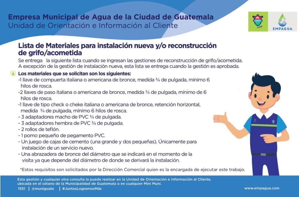 Conectar o reconectar el servicio de agua en Guatemala es común tras una mudanza o retrasos en el pago. Sin embargo, se deben cumplir algunas condiciones para hacerlo y tramitarse en lugares específicos. Ojoconmipisto recopila a continuación las dudas en torno a este proceso con la Empresa Municipal de Agua (Empagua).