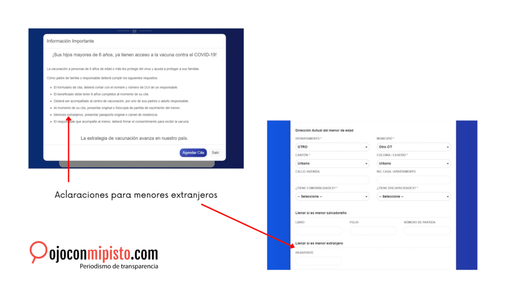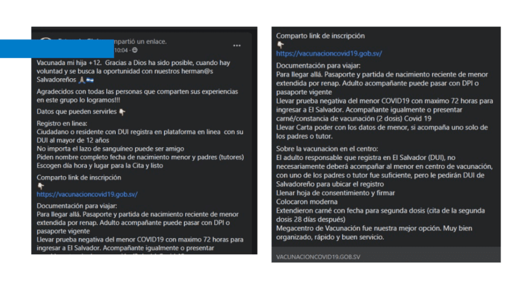 El portal del ministerio de Salud de El Salvador (Minsal) tiene un apartado para registrar a menores de edad para inmunizarse contra la COVID-19. Es posible inscribir también a guatemaltecos y algunas personas han contado su experiencia en redes sociales, aunque la cartera niega esta posibilidad.