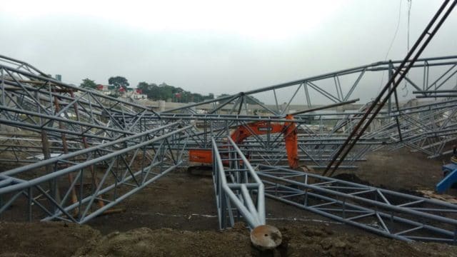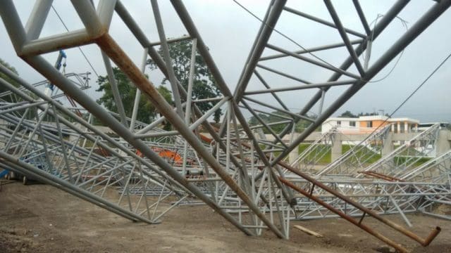 La estructura que Representaciones CEM colocaba en el complejo deportivo de Barberena, Santa Rosa, se cayó. Se trata de la segunda fase del estadio que el alcalde Rubelio Recinos quería inaugurar antes de entregar el cargo, el próximo 15 de enero de 2016.