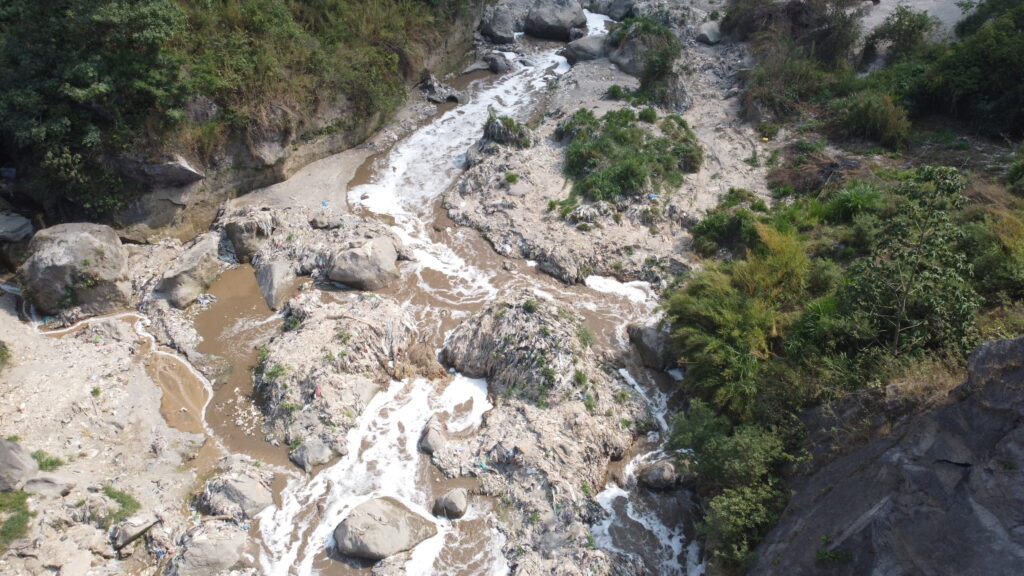 Más tarde recorrimos el camino hacia Santa Cruz Chinautla, y en el kilómetro 5 observamos bolsas abandonadas en la orilla, camiones con ripio y material de construcción lanzados en las laderas del río. Se ha normalizado que ese sea el lugar para desechar escombros provenientes de la ciudad.