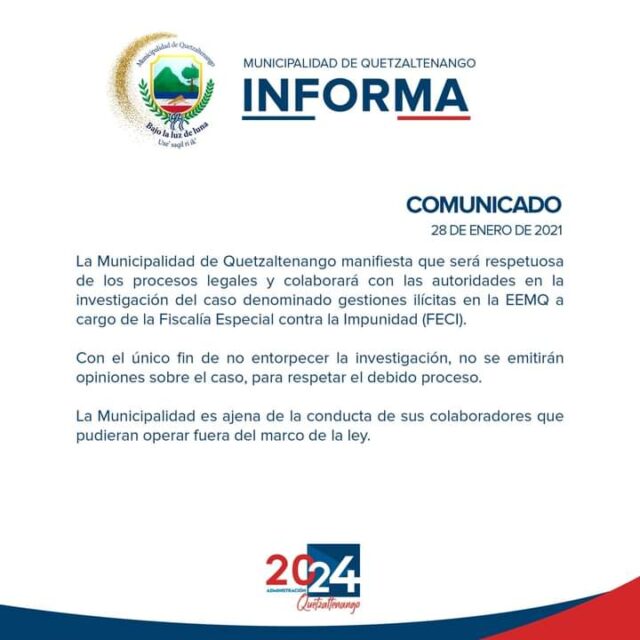 La Fiscalía Especial Contra la Impunidad (FECI) del Ministerio Público (MP) realizó un operativo que dio como resultado la detención de Marvin Calijau Ramírez, gerente de la Empresa Eléctrica Municipal de Quetzaltenango (EEMQ), y a Oscar Chan, subgerente, por recibir supuesto soborno para la ejecución de proyectos.