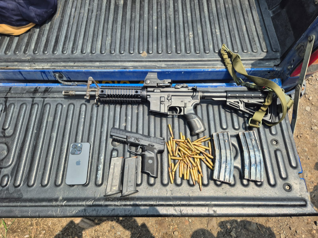 Al momento de su detención se le incautó un picop marca Toyota, una pistola, una carabina y un celular.