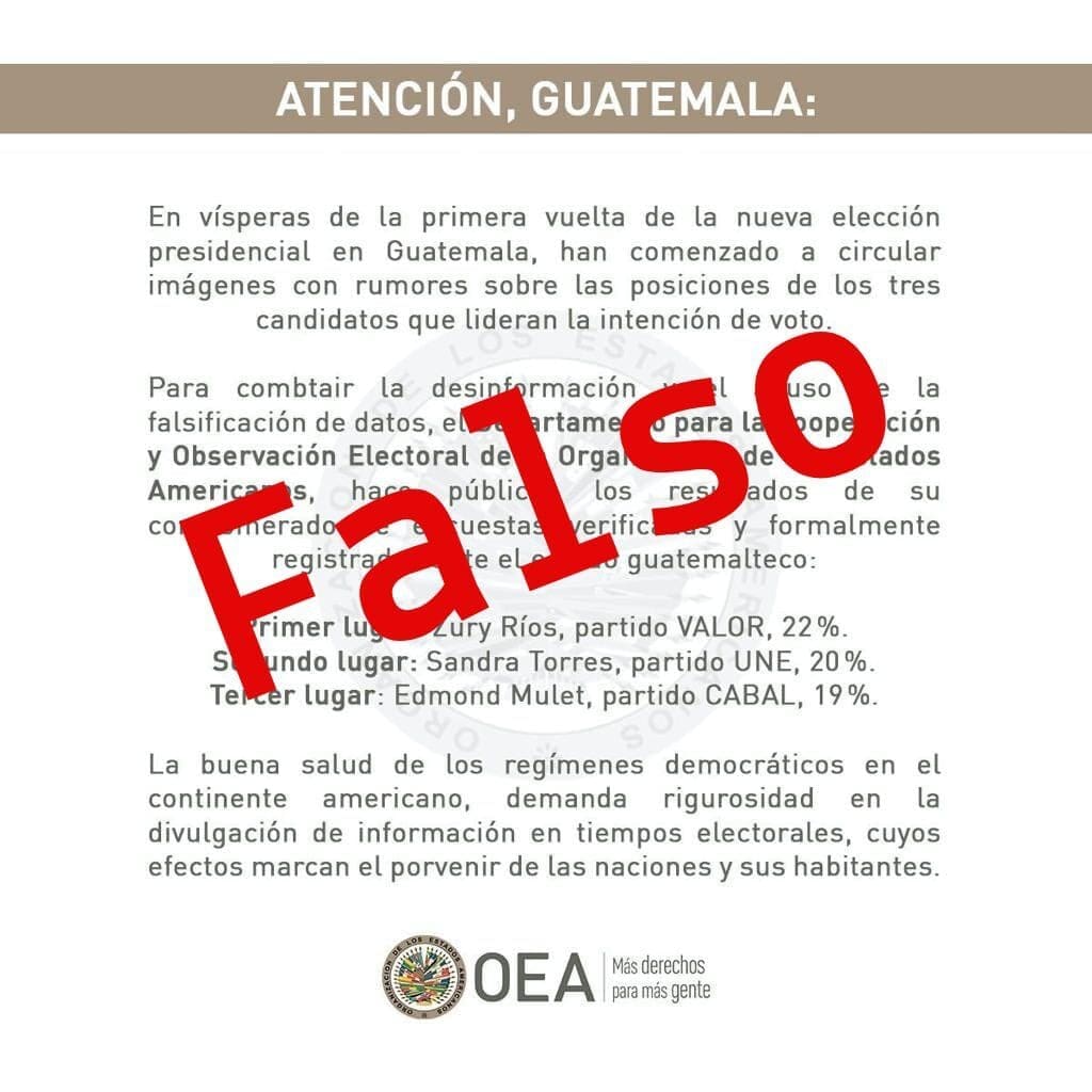 En redes sociales circula un comunicado con el logo de la Organización de Estados Americanos (OEA) en donde, supuestamente, la entidad...
