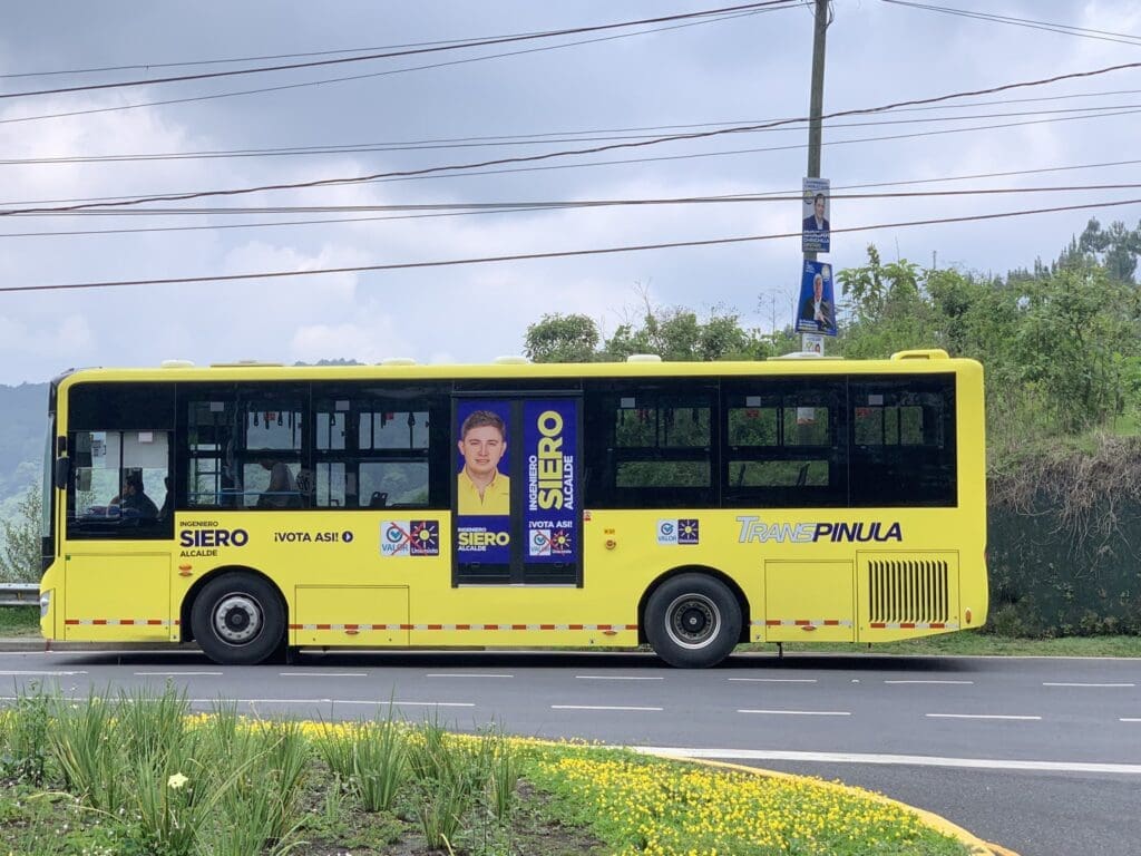 Los buses tienen impresa la cara del alcalde de Santa Catarina Pinula que busca la reelección. En ellos también se hace...