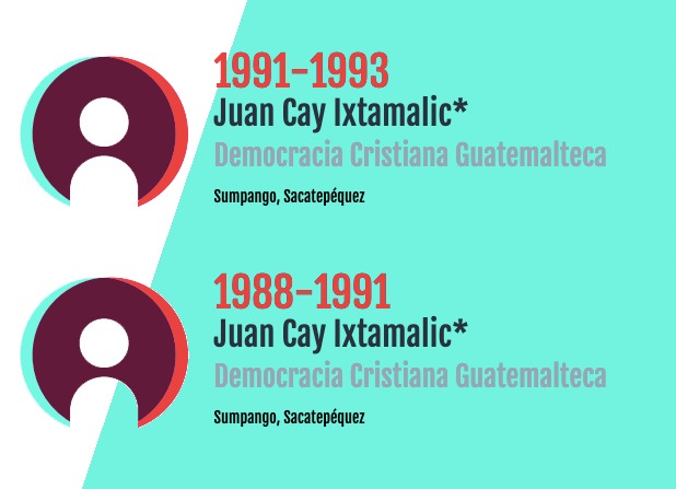 A ocho meses de que todas las corporaciones municipales asumieran el 16 de enero, el presidente del Tribunal Supremo Electoral (TSE), Mynor Custodio Franco, entregó la acreditación como concejal titular V de Sumpango, Sacatepéquez, a Juan Cay Ixtamalic, este miércoles 23 de septiembre. Fue alcalde dos períodos (de dos años cada uno) entre 1988 y 1993.