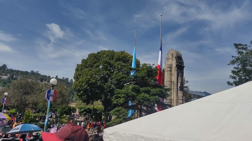 Las banderas de Guatemala y Quetzaltenango amanecieron a media asta en el parque central de la cabecera de ese departamento, después de conocerse el saldo de un concierto la noche anterior: nueve personas muertas y seis heridas que requirieron atención hospitalaria.