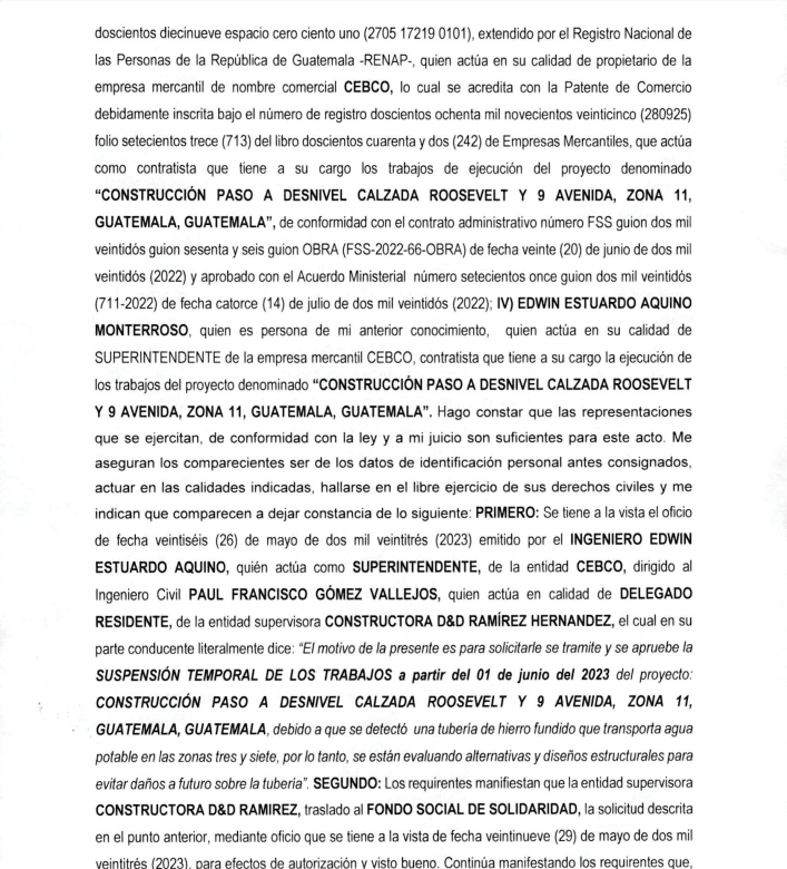 Mario Alejandro Ceballos Sosa, propietario de la empresa CEBCO, tiene otro contrato vigente para construir el paso a desnivel de la avenida Petapa y 53 calle de la zona 12. Los trabajos están valorados en Q82.2 millones y suspendidos.