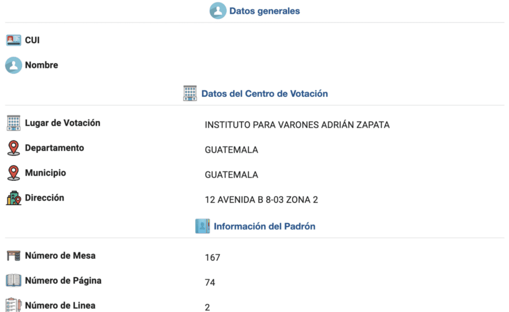 El Tribunal Supremo Electoral (TSE) habilitó una página para consultar el lugar en dónde deben votar las personas empadronadas. Solo es necesario anotar el número personal de identificación (DPI) y la fecha de nacimiento. Se puede acceder desde un teléfono o una computadora.