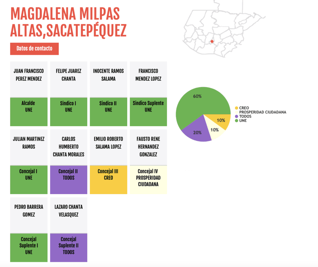 En el ejercicio fiscal de 2020, la Contraloría General de Cuentas (CGC) determinó que la municipalidad de Magdalena Milpas Altas, Sacatepéquez, utilizó fondos dedicados a inversión para liquidar planillas y gastos de funcionamiento. Por ello denunció a todo el concejo municipal ante el Ministerio Público.