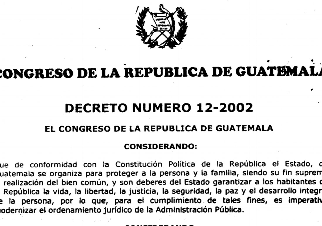 La legislación guatemalteca cuenta con normas específicas, como el Código Municipal, que establece las funciones de las corporaciones municipales. Otras leyes contienen artículos que les atañen. Algunos enumeran atribuciones, otros limitaciones.