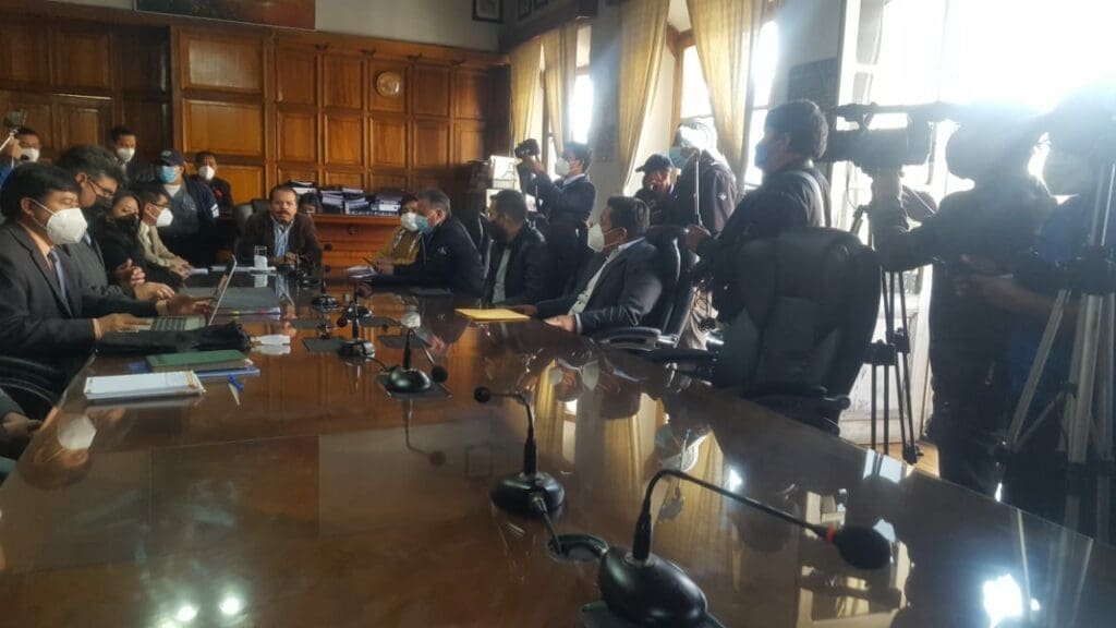 Durante la reunión, en dos momentos hubo tensión derivado de los daños ocasionados un día antes en la parte posterior del edificio municipal, y cuando el alcalde López dijo que el POT es un mandato constitucional y no se puede derogar ni suspender.