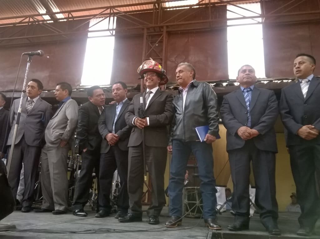 Los bomberos municipales le impusieron el casco de honor a Salvador, para luego pedirle su apoyo durante su gobierno municipal.