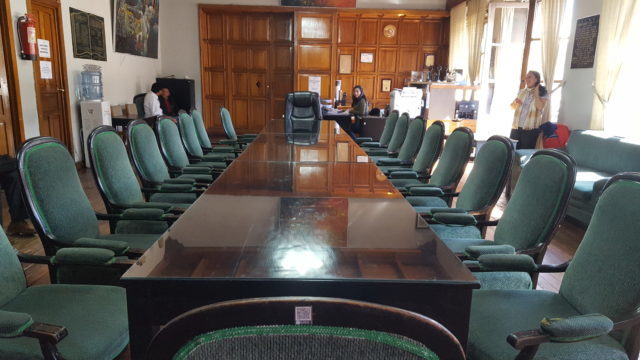 En la sala donde la corporación municipal de Quetzaltenango realiza sus sesiones hay un testigo de hace 40 años, la mesa de cedro. Es una muy larga sobre la que trabajan y pronto darán de baja porque están en cotizaciones para adquirir una nueva.