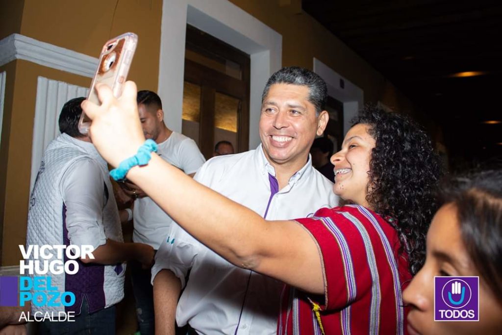 Víctor Hugo del Pozo llegó a la alcaldía de La Antigua Guatemala en 1996 con el comité cívico Cambio para Todos, y volvió a ganar en 1999 con el comité cívico Cambio de Antigua. Estas victorias le sirven para promocionarse en foros públicos como un candidato con experiencia y no improvisado. En estas elecciones el partido que lo impulsa es Todos.