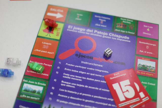 Ojoconmipisto participó en el segundo Festival de Gobierno Abierto, organizado por Guatecambia, en la Universidad Rafael Landívar, el 21 y 22 de noviembre. Estuvo presente en la “Feria sin bueñuelos” con “El patojo chispudo”, un juego de mesa para conocer la gestión municipal.