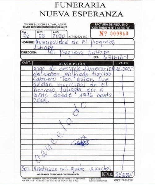 Según el acta municipal 41-2018, que el 17 de abril de 2018 normó el compromiso de ayudar a los familiares con los gastos funerarios, “sufragar el costo de la inhumación de los exalcaldes que al fallecer carecen de los medios económicos suficientes para ello” es un “acto humanitario”.