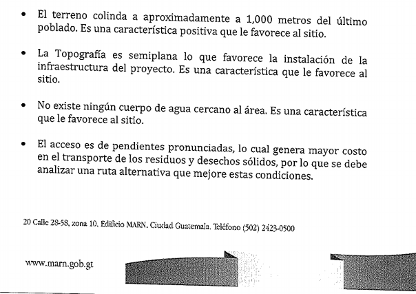 Los bienes adquiridos, además, tienen el aval del ministerio de Ambiente y Recursos Naturales (MARN) para convertirse en relleno sanitario porque “cuenta con las características físicas y ambientales recomendadas para ello”, según opinión técnica emitida el 6 de junio de 2017 por el Departamento para el Manejo de los Residuos y Desechos Sólidos.