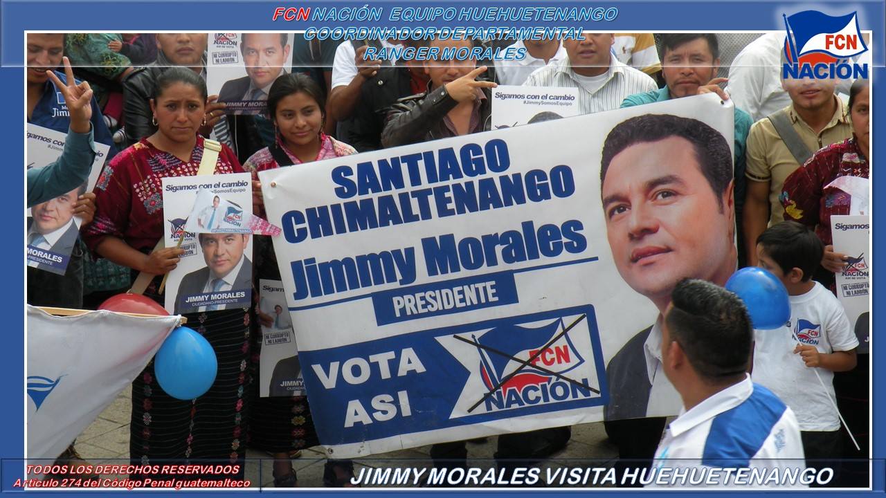 Jimmy Morales realizó, el domingo 18 de octubre, su tercera y última visita a Huehuetenango como candidato presidencial. Seguidores de los distintos municipios empezaron a llegar a la cabecera departamental desde tempranas horas. Portaban mantas en las que se podía leer: “Jimmy te apoyamos”, “Aguacatán está con Jimmy” y “San Pedro Nécta apoya a Jimmy Morales”.