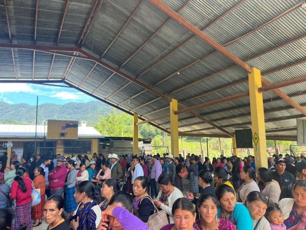 10:40 horas, San Pedro Soloma, Huehuetenango. Se observa afluencia de personas en el centro de votación de la aldea Ixtiapok. Todo transcurre sin novedad. Vía Mauricio López.