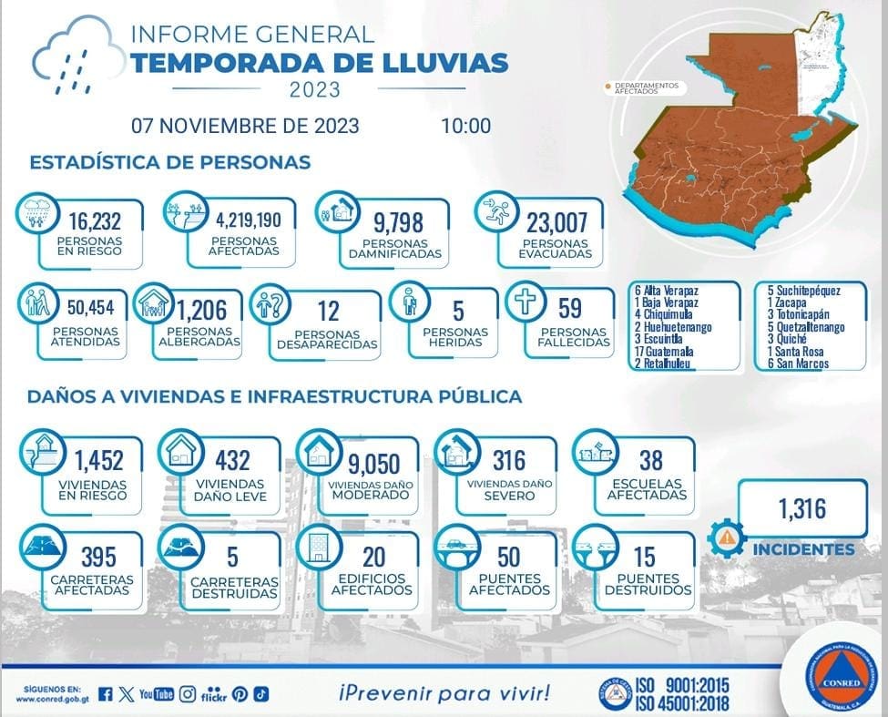 Las precipitaciones no cesan en Alta Verapaz, Quiché, Huehuetenango, Izabal y Petén, los municipios de siempre son los afectados en cada época de lluvia.