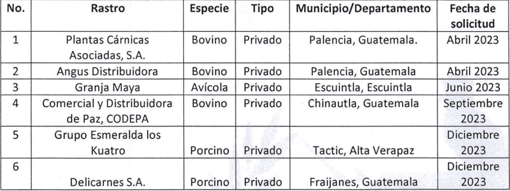 A la fecha, 20 instituciones en Guatemala cuentan con licencias vigentes para operar mataderos. Otras seis tienen solicitudes vigentes para hacer lo mismo, pero ninguna es municipal.