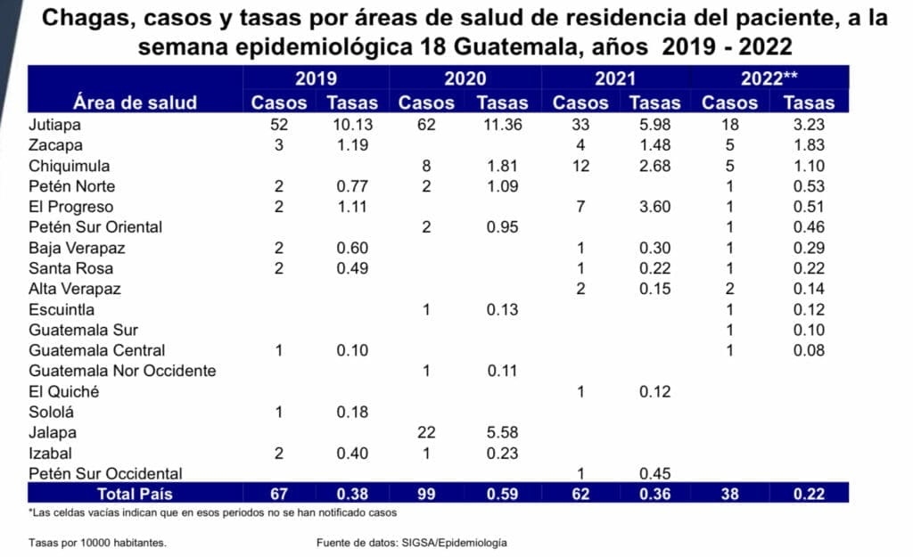Según la Organización Panamericana de la Salud (OPS), hay 21 países en América donde la enfermedad de Chagas está presente. Guatemala es uno de ellos y Comapa, Jutiapa, es uno de los lugares con mayor transmisión. Sin embargo, en este municipio se comenzó a controlar a través del trabajo entre academia, organizaciones internacionales, el ministerio de Salud y la alcaldía.