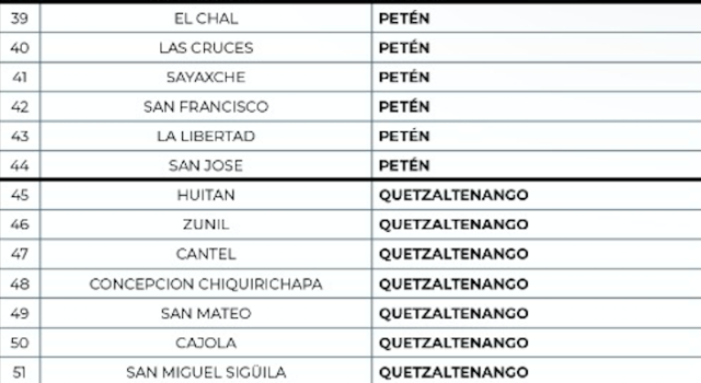 En los restantes 239 sí se han registrado casos. Después de la capital, San Pedro Sacatepéquez, Guatemala, fue el segundo con un caso positivo el pasado 15 de marzo: un hombre de 85 años, el primer fallecido.