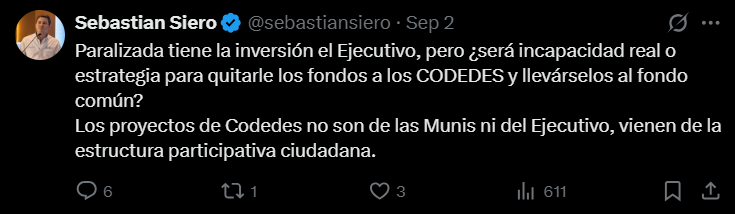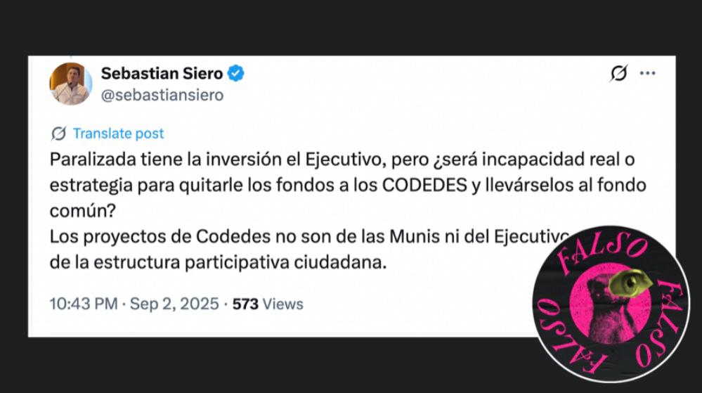 “Paralizada tiene la inversión el Ejecutivo, pero ¿será incapacidad real o estrategia para quitarle los fondos a los Codedes y llevarlos al fondo común?”, cuestiona el jefe edil de Santa Catarina Pinula, en una publicación de “X”.