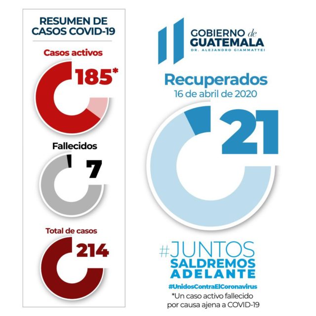 En total suman 214 casos de COVID-19 en el país: 185 activos, 7 fallecidos y 21 recuperados.