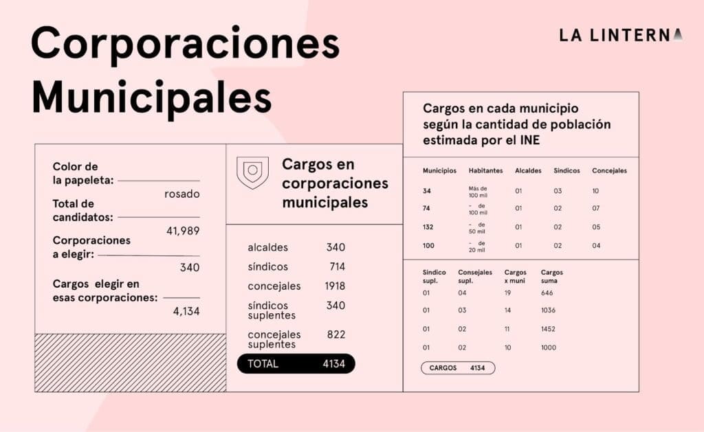De las cinco papeletas que cada ciudadano recibirá, la rosada corresponde a las corporaciones municipales. En el recuadro para marcar la “X” aparece solo la foto del candidato a alcalde y su partido, pero los votos recibidos también determinarán cuántos concejales y síndicos llegarán con él a la municipalidad.