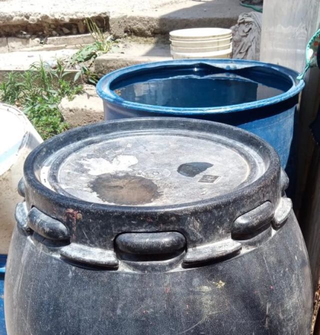 La colonia contigua, El Anexo II (100 casas), ellos no tienen cisterna como nosotros, ellos pagan pipas. Llenan botellas de tres litros de gaseosa que usan para cocinar, el resto lo guardan en toneles, o piden permiso en casa de familiares para lavar ropa o bañarse, así la van pasando.