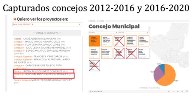 Este día las autoridades de la Policía Nacional Civil (PNC) y el MP realizaron 11 allanamientos para capturar a siete personas. Entre ellos figuran cuatro integrantes del concejo actual (2016-2020) junto al tesorero de la alcaldía y dos miembros de la corporación anterior (2012-2016), también estuvo encabezada por Rizzo.