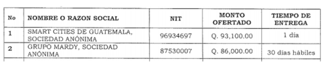 De la misma manera, Grupo Mardy, ofreció exactamente el mismo producto, pero por Q86,000.
