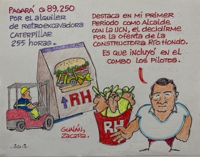 Uno de estos es el alquiler de una retroexcavadora que utilizarán para “obras varias”, no describe cuáles. Se arrendó por 255 horas a Q350 la hora. El precio incluye los pilotos que trabajarán los siete días de la semana en jornada diurna. (NOG 13557343)