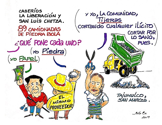 La municipalidad de Tajumulco, San Marcos, adquirió bajo la modalidad de compra directa piedra bola a la Constructora J. G. para la construcción de dos caminos vecinales.