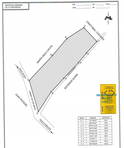 El costo fue de Q67 mil 583, mide 2 mil 863 metros cuadrados y se encuentra en la aldea Paraxquen (NOG 11406488). Se hizo a través de la modalidad de compra directa (de menos de Q90 mil).
