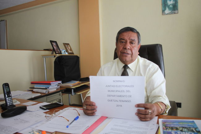 La junta electoral departamental está conformada por Gustavo Adolfo Galindo Cajas, secretario; Luis Rebolé, vocal, Luis René Fuentes Gonzáles y Julio Mazariegos Oroxom, suplentes, quienes comenzaron a capacitarse hace seis meses.