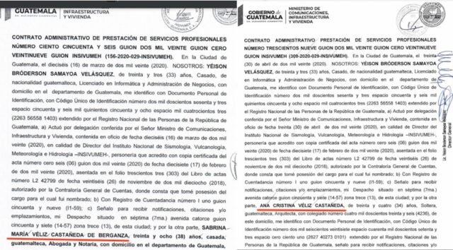 El funcionario contrató a Sabrina Veliz y su hermana, de 34 años, en un lapso de dos semanas entre 16 y el 30 de abril. Samayoa buscó a la abogada porque conoció su experiencia en el área jurídica cuando trabajaron en el Infom, esto fue lo que respondió por mensajes de texto.
