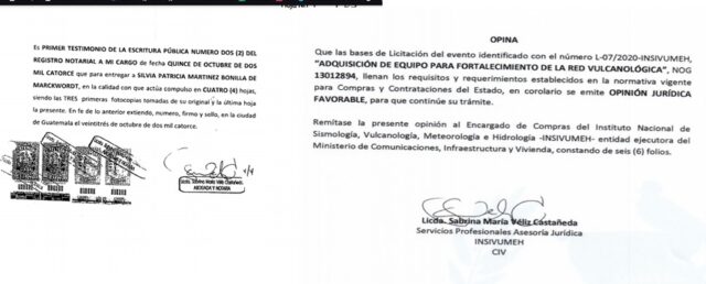 Uno de los dictámenes que dio fue a las bases del concurso para adquirir equipo para fortalecimiento de la red de vulcanología. Esta se adjudicó por Q3.3 millones a Outsourcing Total S.A, constituida en enero de 2008.