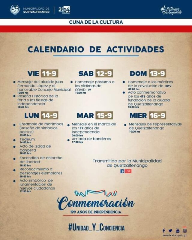 La Feria de Independencia de Quetzaltenango estará más cerca que nunca este 2020. A un clic en redes sociales para seguir las actividades organizadas por la Dirección de Comunicación Social de la comuna.