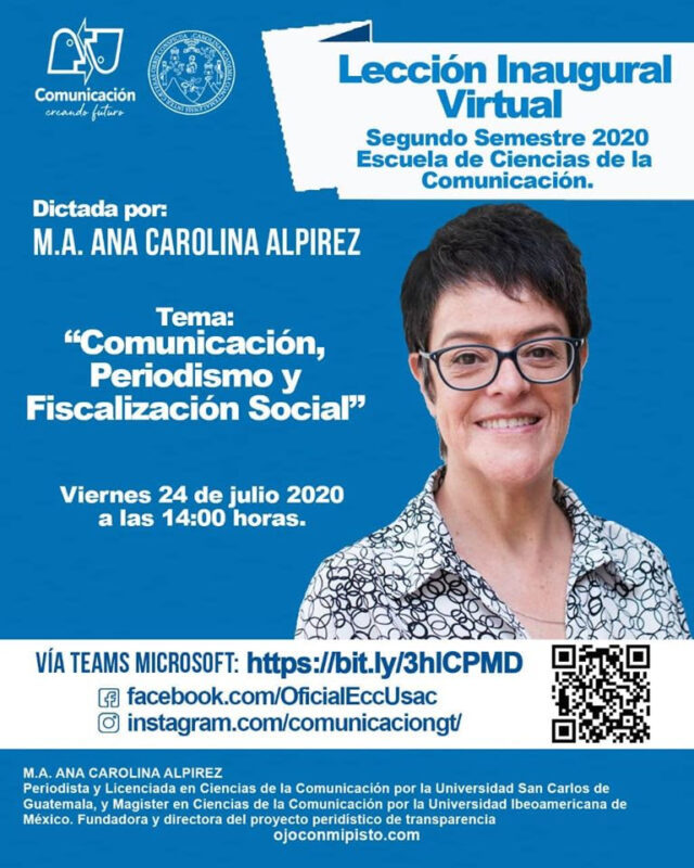Este mes nuestra directora, Ana Alpírez, impartió una charla sobre periodismo y fiscalización como parte de la lección inaugural de la Escuela de Comunicación de la Universidad de San Carlos. Puedes ver la sesión completa, aquí.⚡