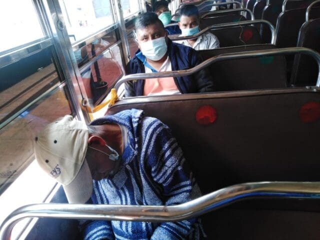 Mónica Valle, usuaria del transporte de Palín a la ciudad de Guatemala, cuenta que el servicio es pésimo. “El bus va lleno y al ayudante le da igual porque sigue metiendo gente, aparte de que ya no dan gel ni le toman la temperatura a los que se suben”. A su criterio, quienes contribuyen a que aumente el riesgo de contagios no son solo los choferes, sino también los pasajeros porque “van comiendo y tomando agua, y se quedan todo el viaje con la mascarilla en la barbilla mientras todos los demás tenemos que aguantarnos porque no tenemos otro modo de movernos”.