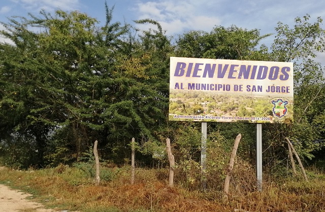 A mitad del camino una valla anuncia “Bienvenidos al municipio de San Jorge”. Es un rótulo con seis perforaciones de bala, puede que solo se trate de una mala carta de presentación. En los 82 kilómetros cuadrados del municipio, en 2018 se registró un homicidio con arma de fuego, según la subestación de la Policía Nacional Civil (PNC); en lo que va del año, tres. Todos en investigación.